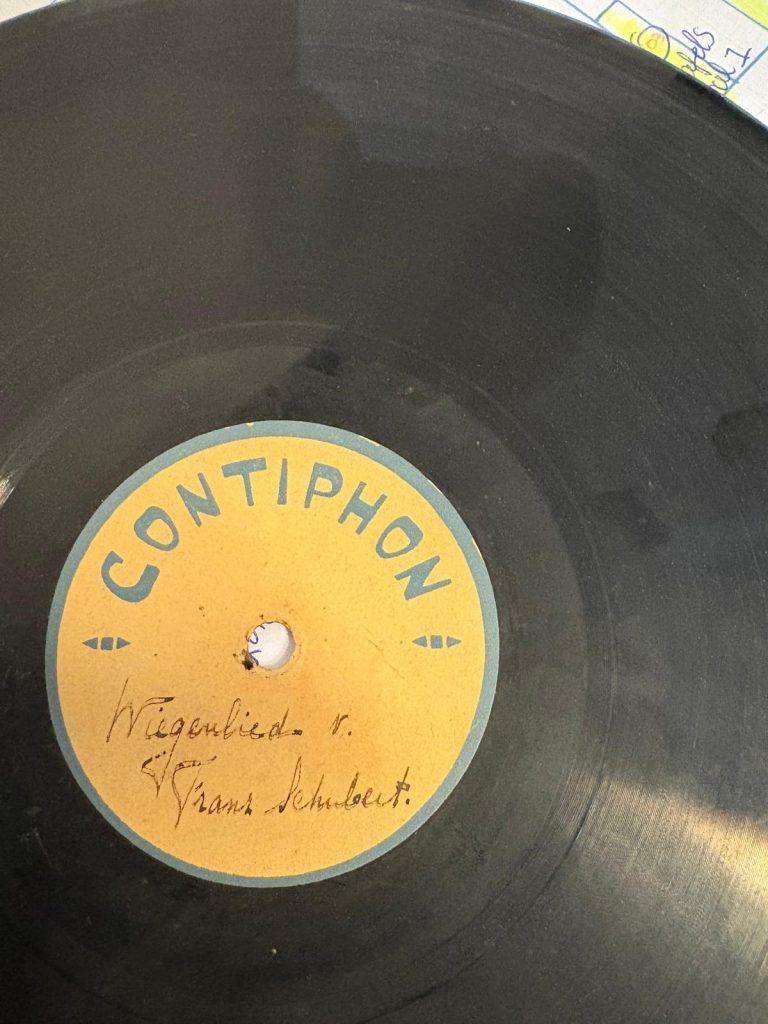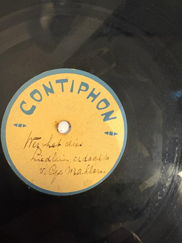 78 toeren lakplaat met aan de ene zijde Wiegenlied van Frans Schubert en aan de andere zijde “Wer hat dies Liedlein erdacht” v. G. Mahler”